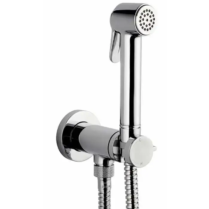 Bossini Cube Brass Гигиенический душ с прогрессивным смесителем, лейка металлическая, шланг металлический, цвет: хром