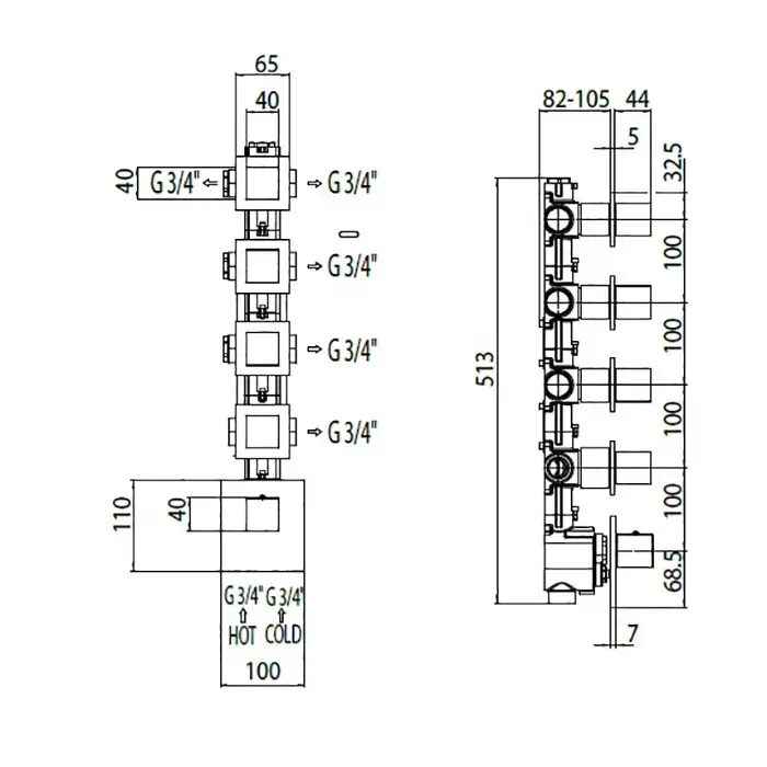 Bossini Cube Термостат для душа, встраиваемый, с девиаторм/запорным вентилем на 3 - 6 выходов, уст-ка верт/гор., цвет: хром