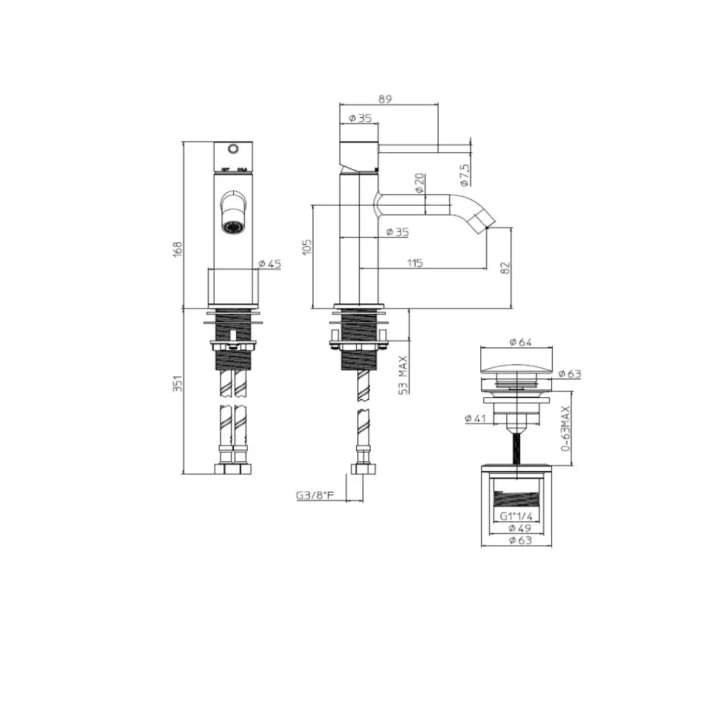 Bossini Teo M Смеситель для раковины TEO-M высокий 309 мм, с заглушкой 1"1/4 и гибкая подводка из нерж. стали, цвет: Nero opaco