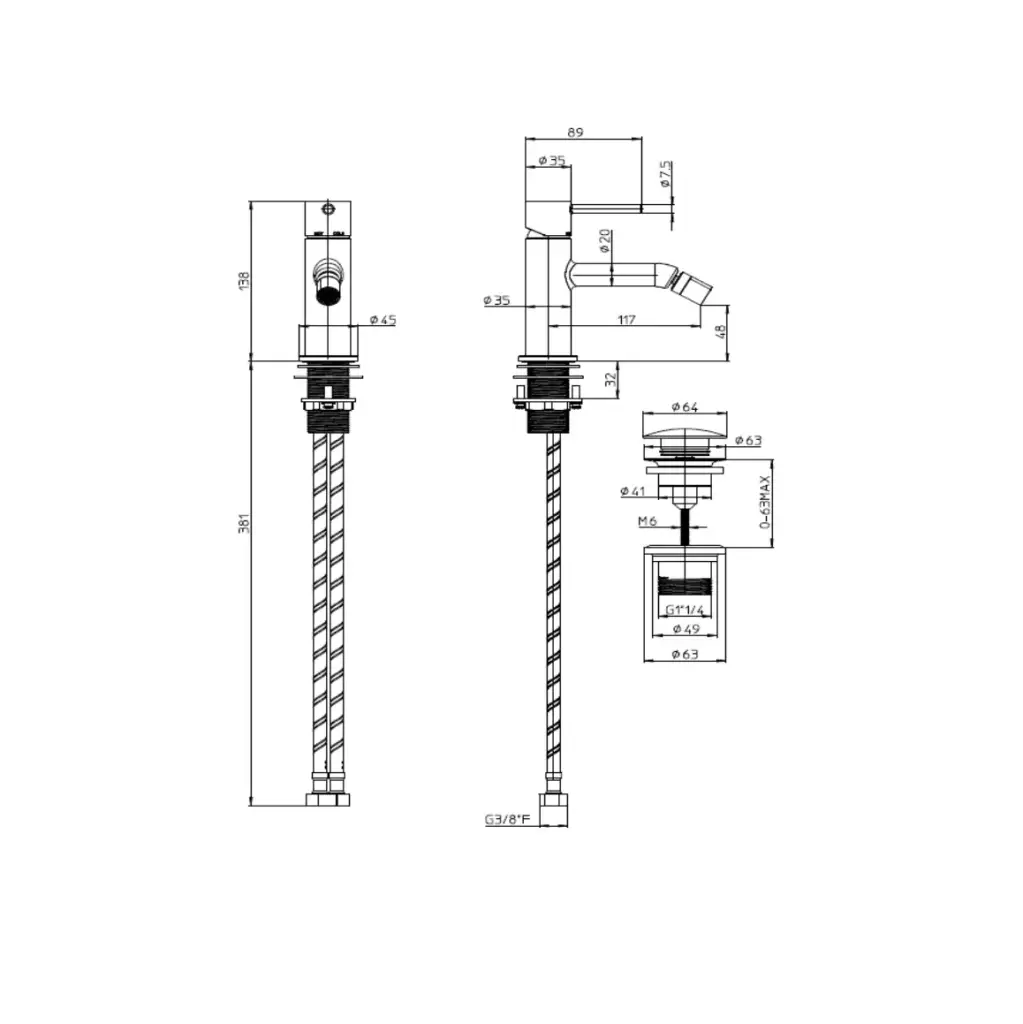 Bossini Teo Смеситель для биде с донным клапаном, гибкая подводка. стали, цвет: хром