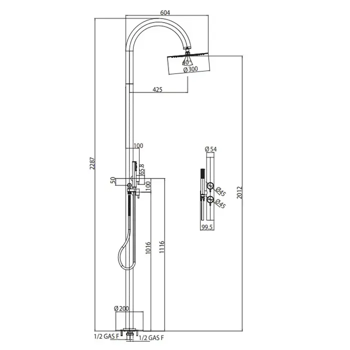 Bossini Tetis Душевая колонна напольная, h2285 мм, верхний душ Ø300 мм, 2 прогрессивных смесителя, цвет: хром