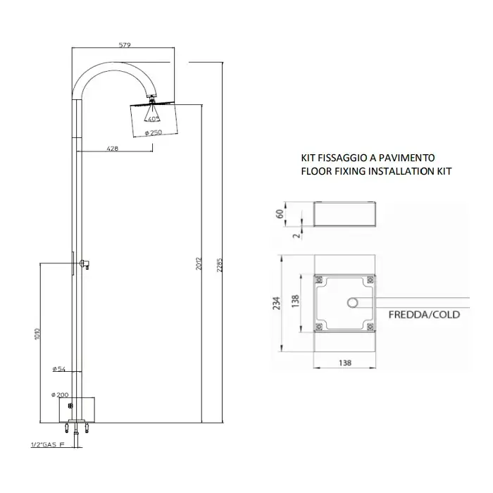 Bossini Pool Душевая колонна со смесителем и верхним душем, напольная, цвет: хром