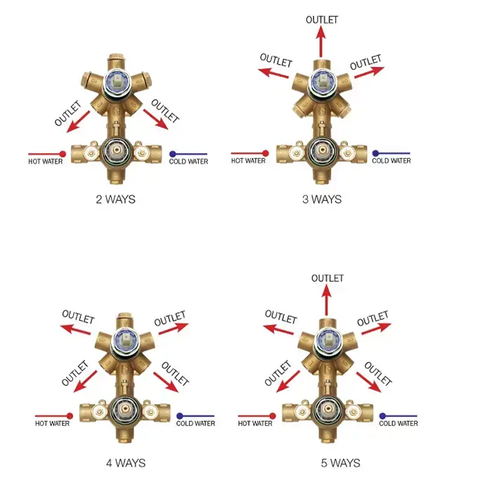 Bossini Встраиваемая часть термостата с девиатором 1-5 направления' 1/2", цвет: латунь