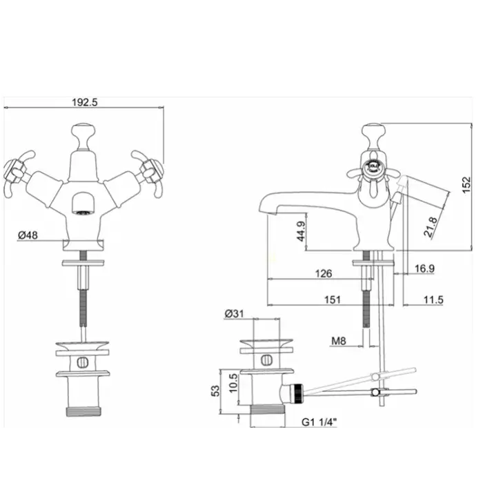 Burlington Anglesey Смеситель для раковины на 2 отв, излив 2,2h см, пробка, цвет: хром/белый глянец AN10-QT
