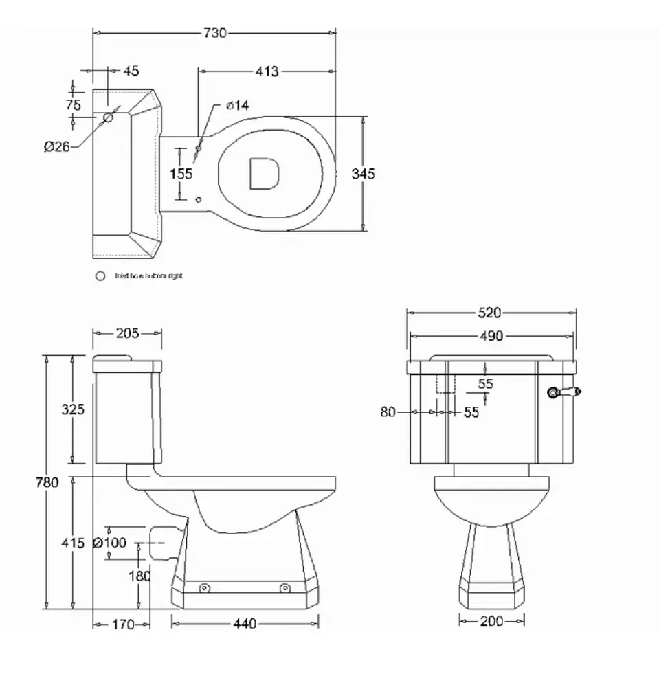 Burlington Бачок с ручкой и сливным механизмом, цвет: белый/орех глянцевый C1 WAL
