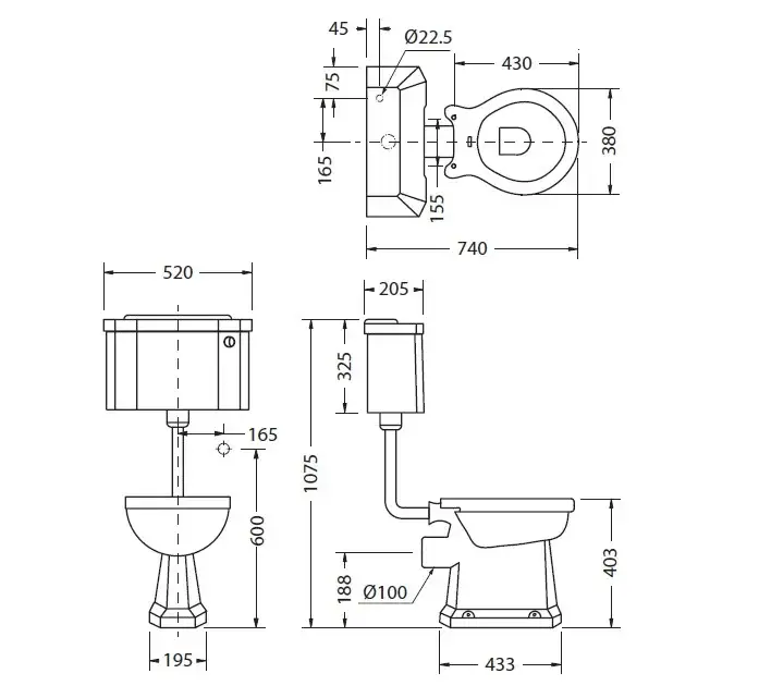 Burlington Бачок с ручкой и сливным механизмом, цвет: белый/шлифованный никель C1 BNKL
