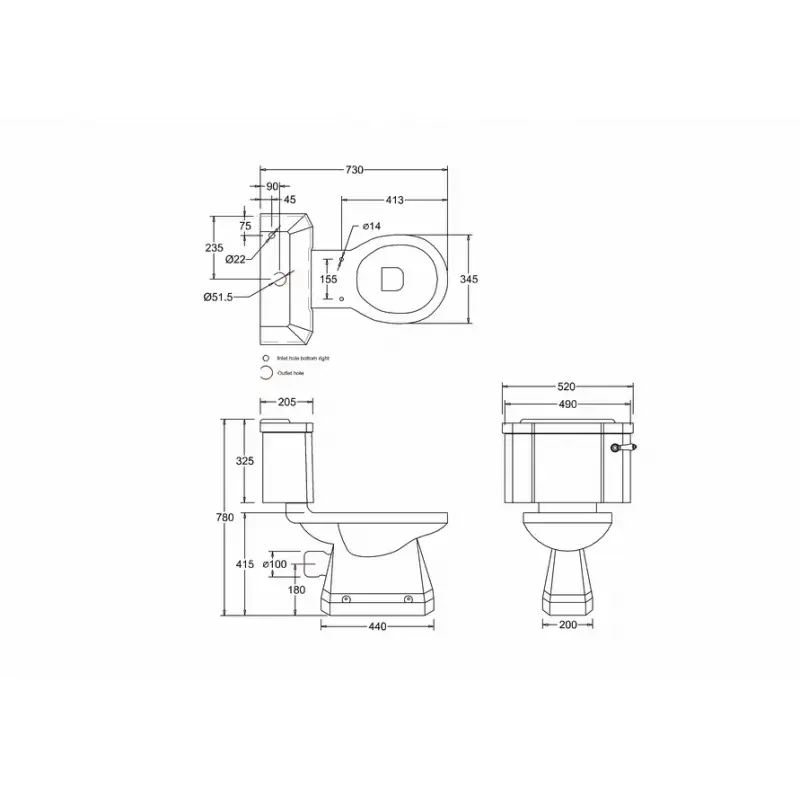 Burlington Бачок с ручкой и сливным механизмом, цвет: белый/золото глянцевое C1 GOLD