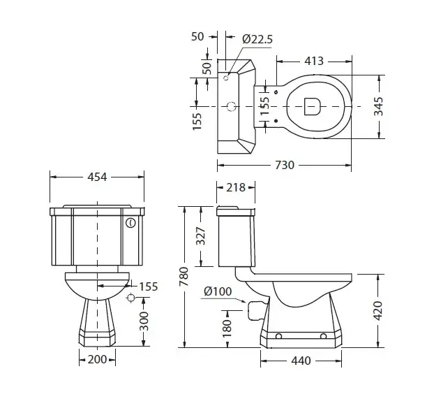 Burlington Бачок с ручкой и сливным механизмом, цвет: белый/золото глянцевое C3 GOLD