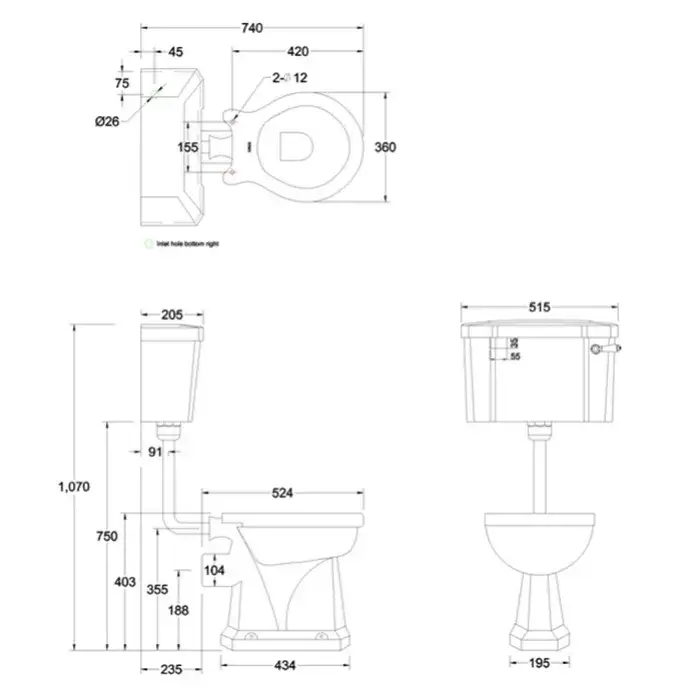 Burlington Bespoke Набор труб для низкого бачка: труба слива, соединение, цвет: хром глянец T31 CHR
