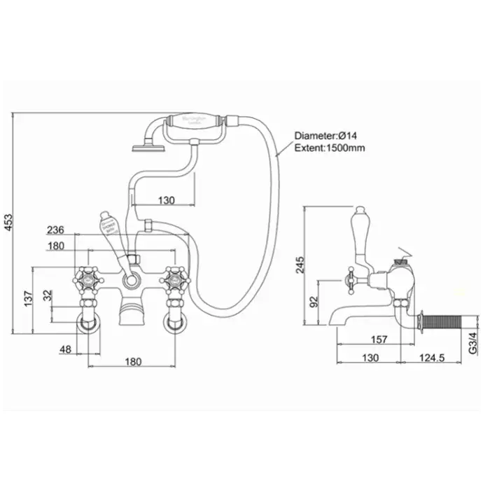 Burlington Birkenhead Смеситель для ванны с ручным душем и держателем, цвет: хром/черный глянец BI17-QT BLA