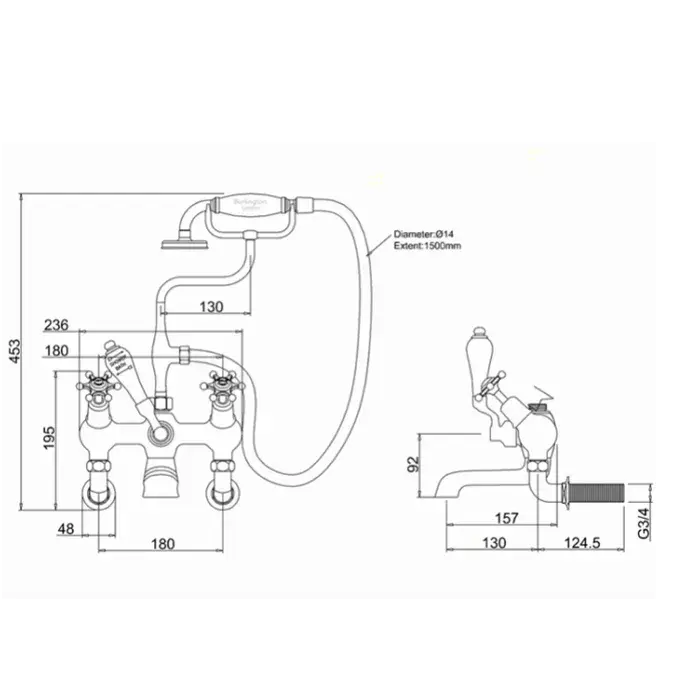 Burlington Birkenhead Смеситель для ванны с ручным душем и держателем, цвет: хром/белый глянец BI21-QT