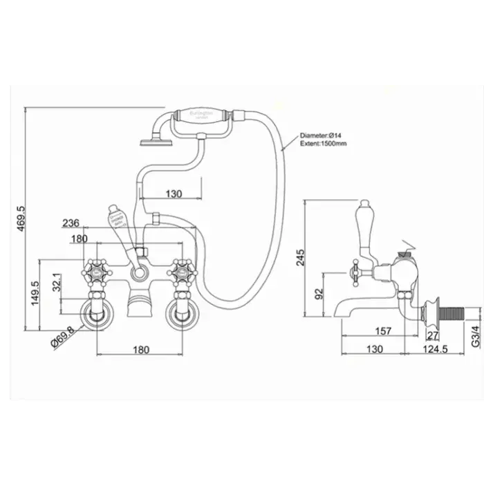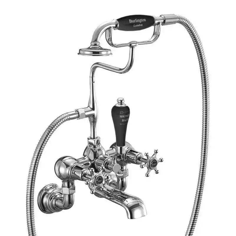 Burlington Birkenhead Смеситель для ванны с ручным душем и держателем, цвет: хром/черный глянец BIR17-QT BLA