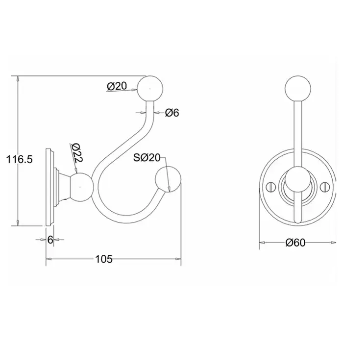 Burlington Black Крючок для полотенец двойной, подвесной, цвет: хром/орех глянцевый A4 WAL