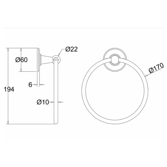Burlington Black Полотенцедержатель круглый d17 см, подвесной, цвет: хром/орех глянцевый A3 WAL