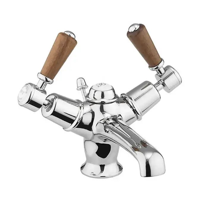 Burlington Bridge Смеситель для раковины на 2 отверстия, излив 21h см, цвет: хром/орех глянцевый KE28-QT WAL