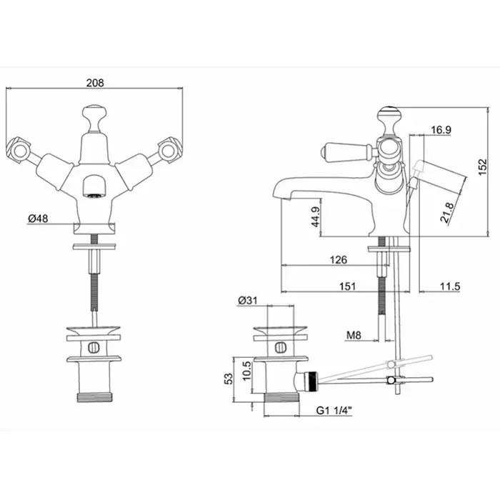 Burlington Bridge Смеситель для раковины на 2 отв, излив 2,2h см, с пробкой, цвет: хром/орех глянец KE10-QT WAL
