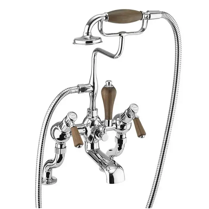 Burlington Bridge Смеситель для ванны с ручным душем и держателем, цвет: хром/орех глянец KE21-QT WAL