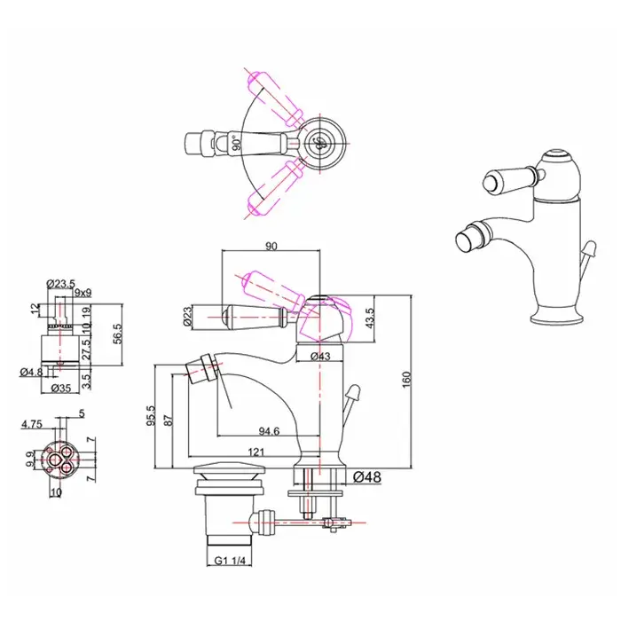 Burlington Chelsea Смеситель для биде на 1 отверстие, излив 8,7h см, цвет: хром/белый глянец CH23
