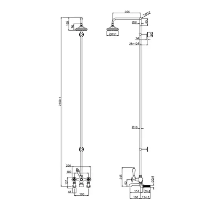 Burlington Claremont Душевой комплект: смеситель, душ, стойка, излив 13 см, цвет: хром/черный глянец H295-CL BLA