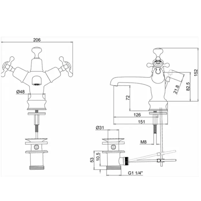 Burlington Claremont Смеситель для раковины на 2 отверстия, излив 21h см, цвет: хром/белый глянец CL28-QT
