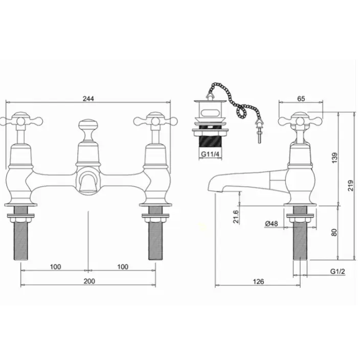 Burlington Claremont Смеситель для раковины на 2 отв, с пробкой и цепочкой, цвет: хром/черный глянец CL10-QT BLA