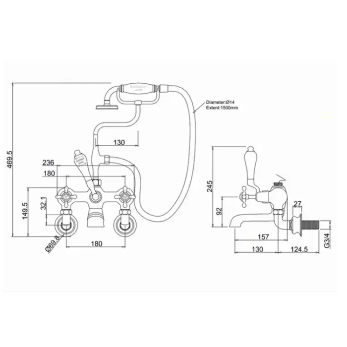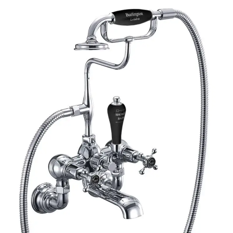 Burlington Claremont Смеситель для ванны с ручным душем и держателем, цвет: хром/черный глянец CLR17-QT BLA
