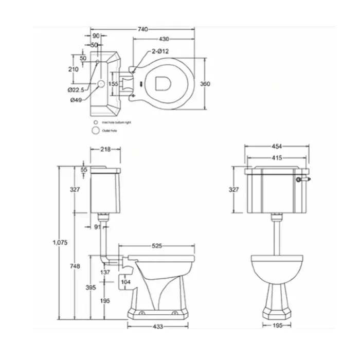 Burlington Classic Бачок с ручкой и сливным механизмом, цвет: белый/черный глянцевый C3 BLA