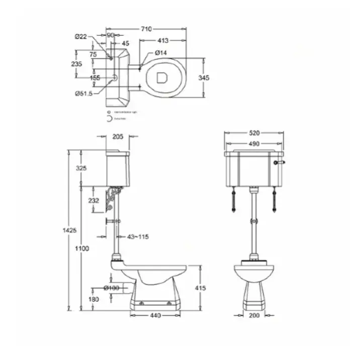 Burlington Classic Бачок с ручкой и сливным механизмом, цвет: белый/черный глянцевый C1 BLA
