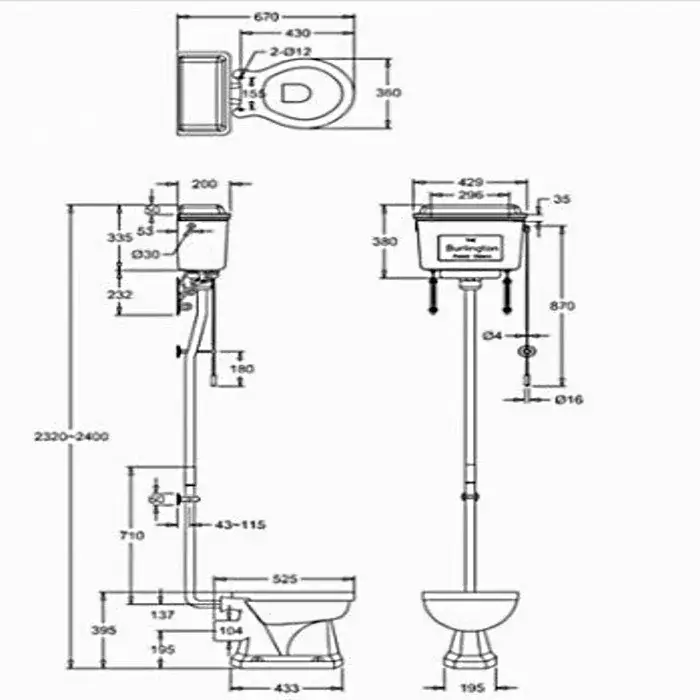 Burlington Classic Кронштейн сливного бачка с орнаментом 4х15,4х23,2h см, цвет: хром глянцевый T32 CHR
