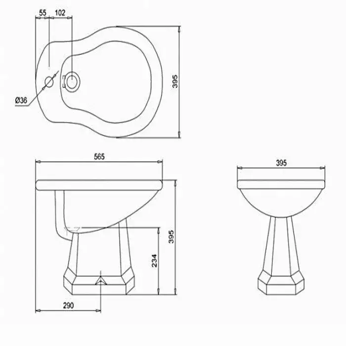 Burlington Classic Биде напольное 40х56 см c 1 отв. под смеситель и переливом, цвет: белый глянцевый P4