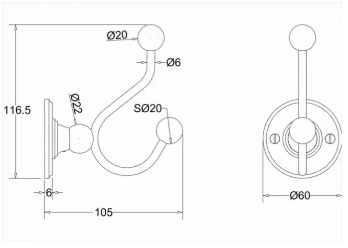 Burlington Classic Крючок для полотенец двойной, подвесной, цвет: хром глянцевый A4 CHR
