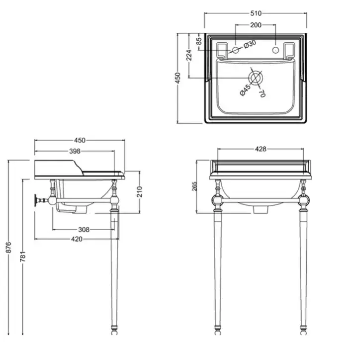 Burlington Classic Раковина подвесная 65х57,5 см, перелив, 3 отв. под смеситель, цвет: белый глянец B15 3TH
