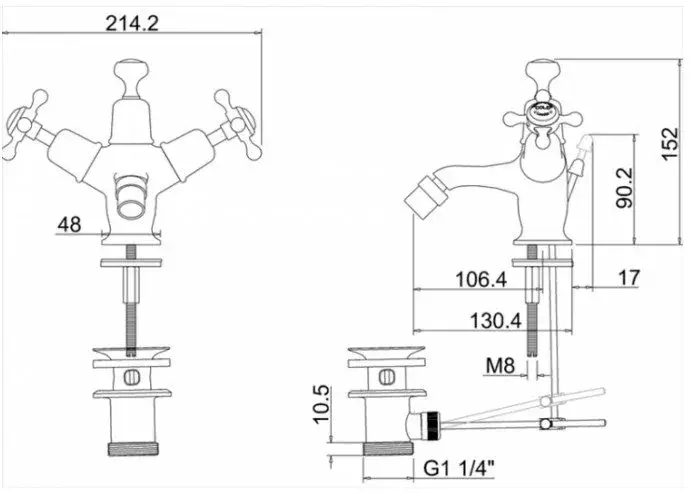 Burlington Classic Смеситель для биде на 1 отверстие, донный клапан, цвет: хром/белый глянец BI13-QT