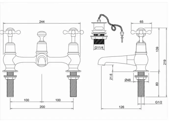 Burlington Classic Смеситель для раковины на 2 отв, излив 2,2h см, с пробкой, цвет: хром/белый глянц CL10-QT