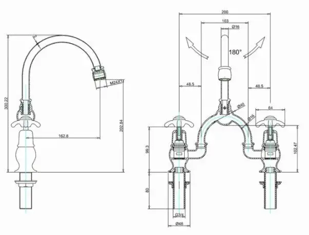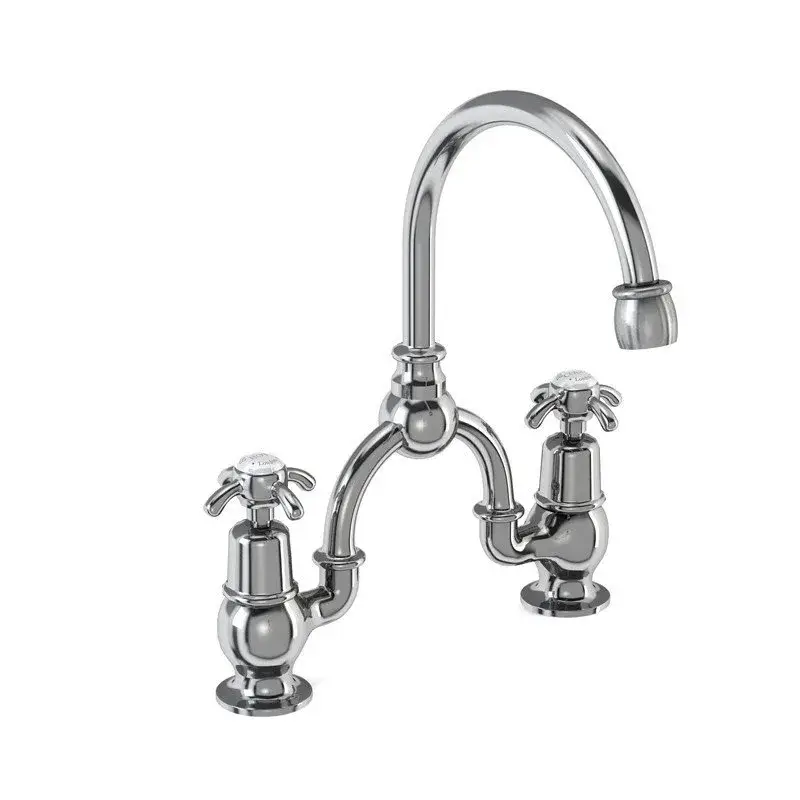 Burlington Classic Смеситель для раковины на 2 отверстия, излив 20h см, цвет: хром/белый глянец AN27-QT