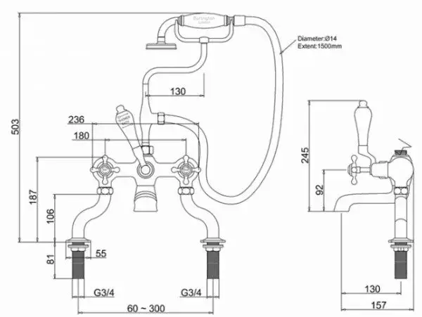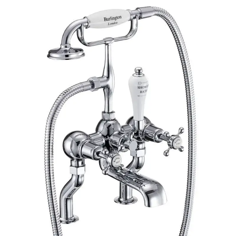 Burlington Classic Смеситель на борт ванны с изливом 13 см и ручным душем, цвет: хром/белый глянец CL15-QT