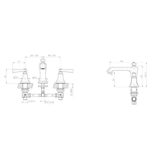 Burlington Crosswater Смеситель для раковины на 3 отверстия, излив 8,8h см, цвет: хром глянцевый R-11-08-PC