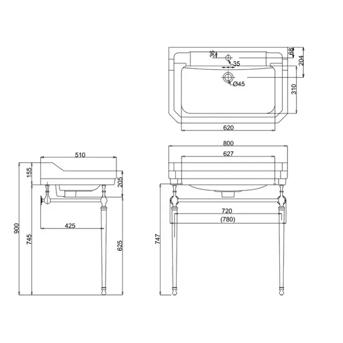 Burlington Edwardian Консоль под раковину B18 1TH, напольная 72х42,5х74,5h см, цвет: хром глянцевый T50 CHR