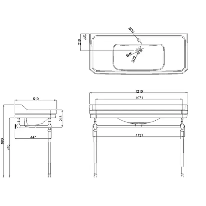 Burlington Edwardian Консоль под раковину B18 1TH, напольная 72х42,5х74,5h см, цвет: хром глянцевый T50 CHR