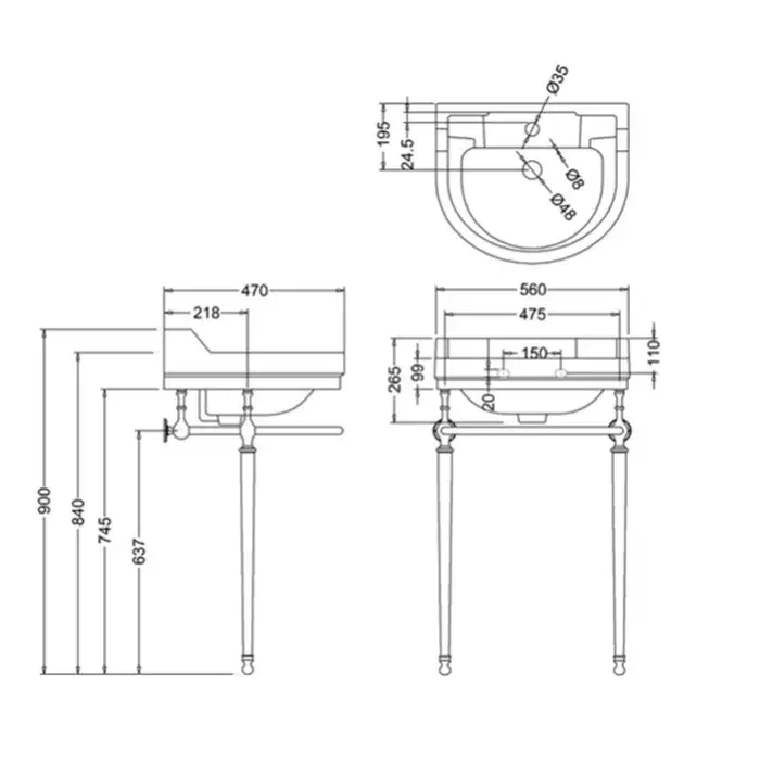 Burlington Edwardian Консоль под раковину B18 1TH, напольная 72х42,5х74,5h см, цвет: хром глянцевый T50 CHR