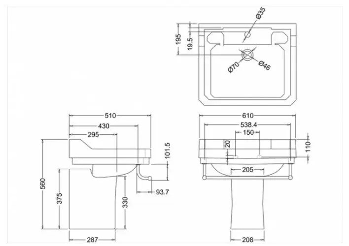 Burlington Edwardian Пьедестал для раковины B1/B2/B14/B15/B18, напольный 68h см, цвет: белый глянец P6