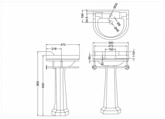 Burlington Edwardian Консоль под раковину B5 1TH, напольная 53,8х42,5х74,5h см, цвет: хром глянцевый T23A CHR