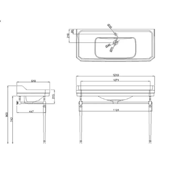 Burlington Edwardian Консоль под раковину B18 1TH, напольная 72х42,5х74,5h см, цвет: хром глянцевый T50 CHR