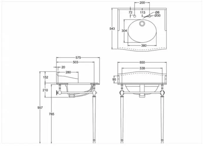Burlington Georgian Консоль под раковину B15 1TH, напольная 53,8х50,3х78,5h см, цвет: хром глянцевый T49A CHR