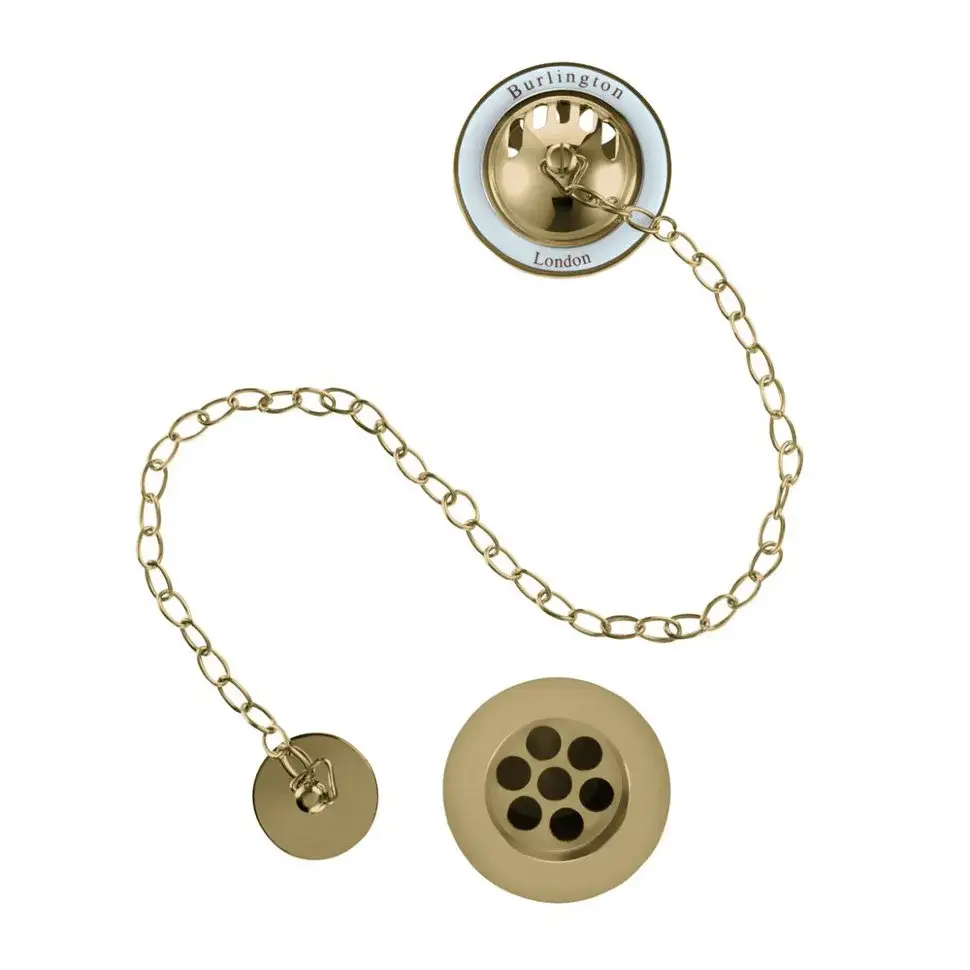Burlington Gold Слив-перелив для ванны универсальный с пробкой и цепочкой, цвет: золото глянцевое W4 GOLD