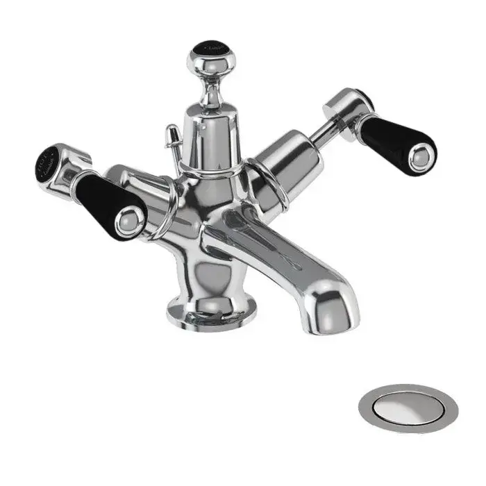 Burlington Kensington Смеситель для раковины на 2 отверстия, излив 20h см, цвет: хром/черный глянец KER27-QT BLA