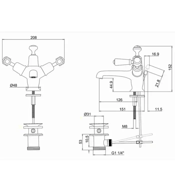 Burlington Kensington Смеситель для раковины на 2 отв, с пробкой и цепочкой, цвет: хром/белый глянец KE10-QT