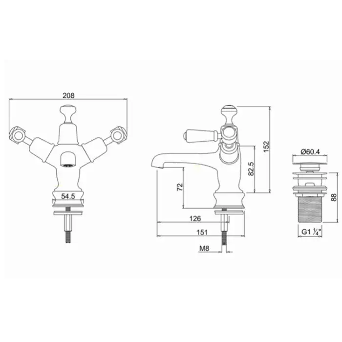 Burlington Kensington Смеситель для раковины на 2 отв, с пробкой и цепочкой, цвет: хром/белый глянец KE10-QT
