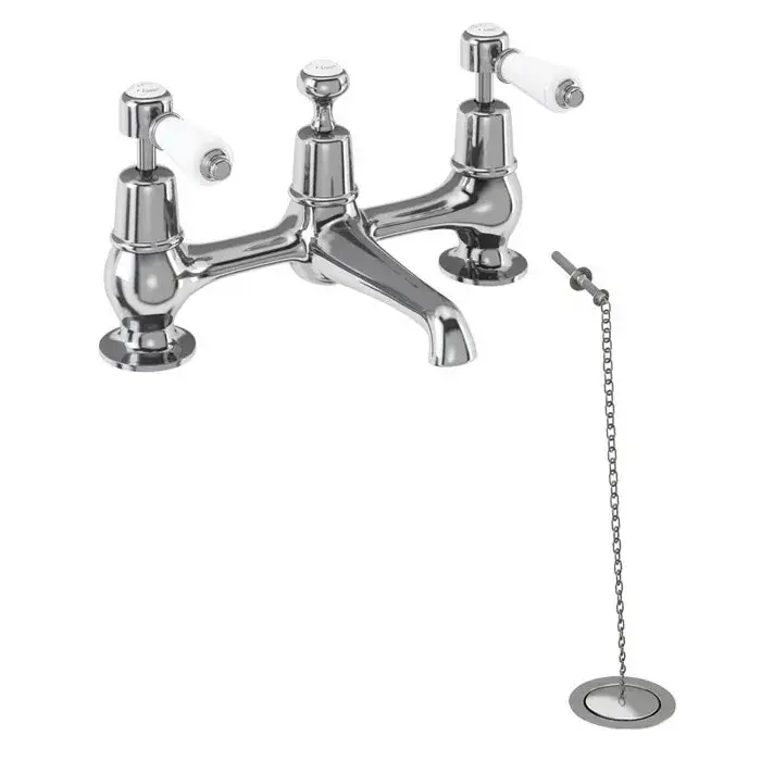 Burlington Kensington Смеситель для раковины на 2 отв, с пробкой и цепочкой, цвет: хром/белый глянец KE10-QT