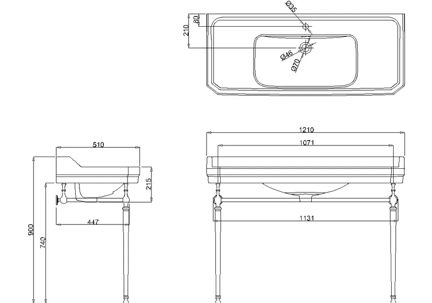Burlington Консоль под раковину, напольная 113х44,7х74,5h см, цвет: шлифованный никель T51 BNKL